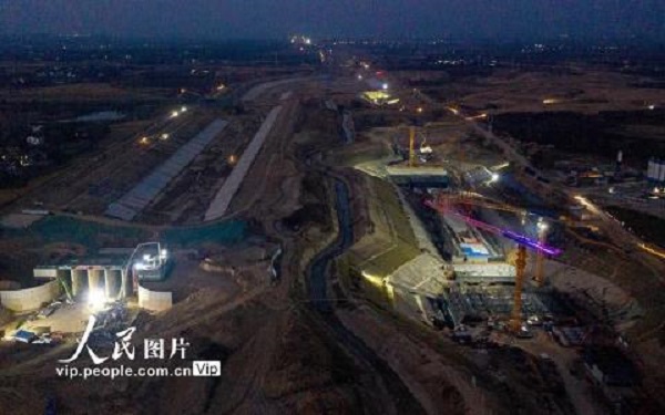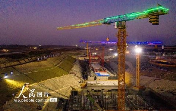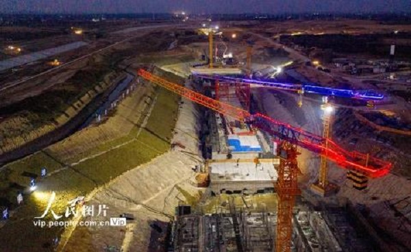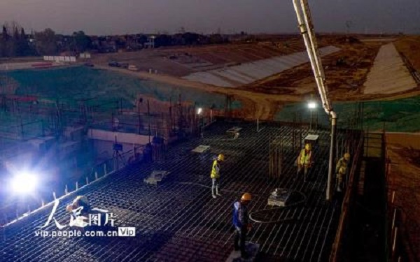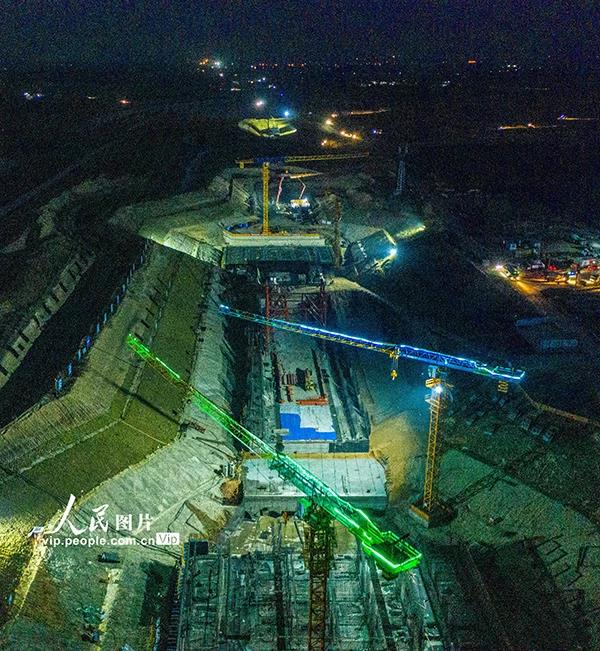 2020年11月15日,引江濟(jì)淮工程安徽省合肥市廬江縣廬城鎮(zhèn)廬江節(jié)制閘施工現(xiàn)場(chǎng),建設(shè)者們正挑燈夜戰(zhàn)加快工程進(jìn)度。