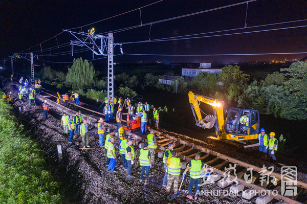 7月29日晚10:20分,寧西鐵路安徽段200余名工作人員隨著施工命令的下達(dá),寧西上行線線路回?fù)苁┕ふ介_始,鋸軌、扒砟、穿滑軌撥移、起道搗固等一系列工序緊張有序展開。